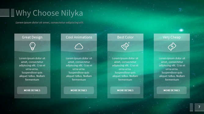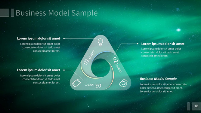 星空布景动态科技感PPT模板。一份时髦IOS风幻灯片模板,绚丽宇宙星空布景,半透明形状元素,很有科技感,美观的动态播映作用,页面丰富,另附带一组小图标。所用英文字体:Source Sans Pro。