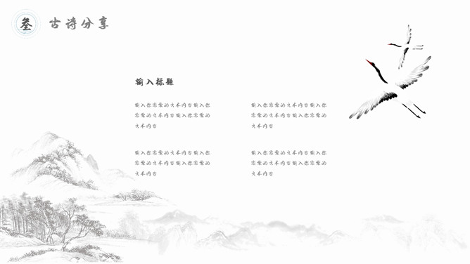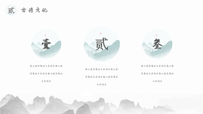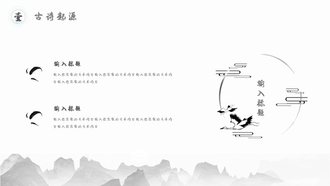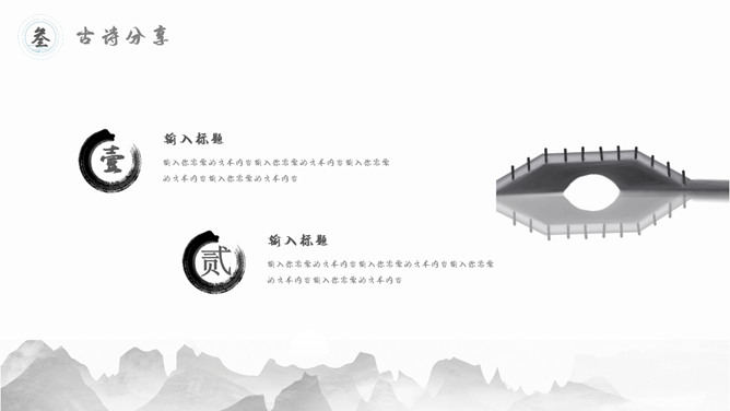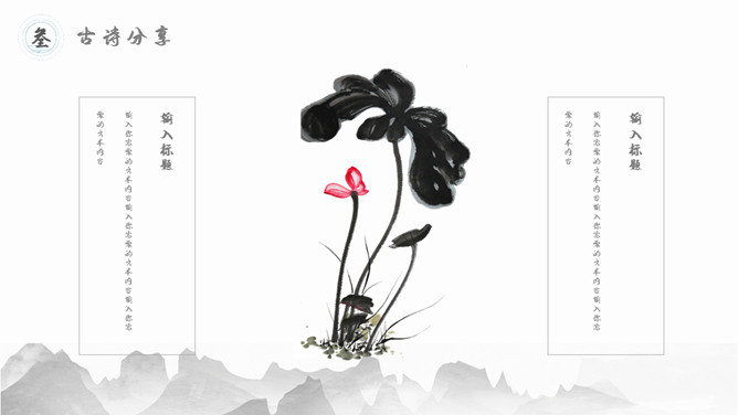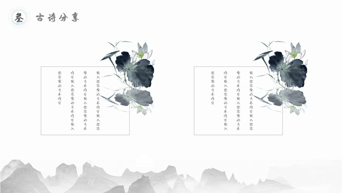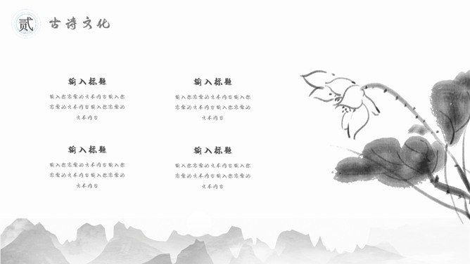 古典文明精巧中国风PPT模板。一套精巧中国风幻灯片模板,水墨古典元素规划,合适古典中国文明相关内容演示。