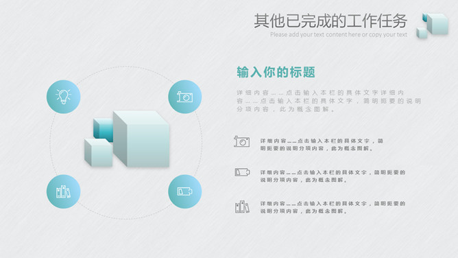 新鲜立方体立体作用PPT模板。一套新鲜精约通用幻灯片模板,方块立方体装修,立体视觉作用,动态播放。