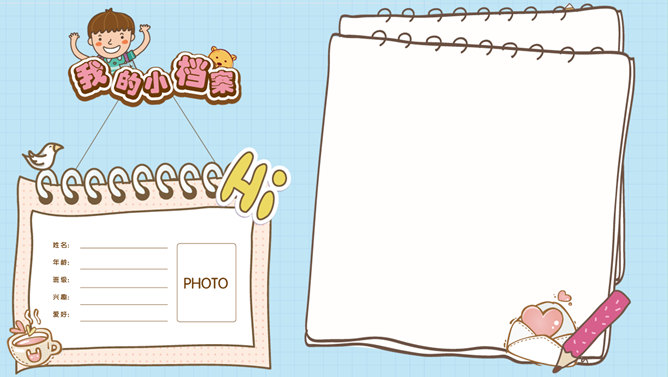 心爱欢喜卡通儿童PPT模板。一套卡通风格幻灯片模板,欢喜心爱儿童背景,页面丰富,多对话文本框,非常有用。