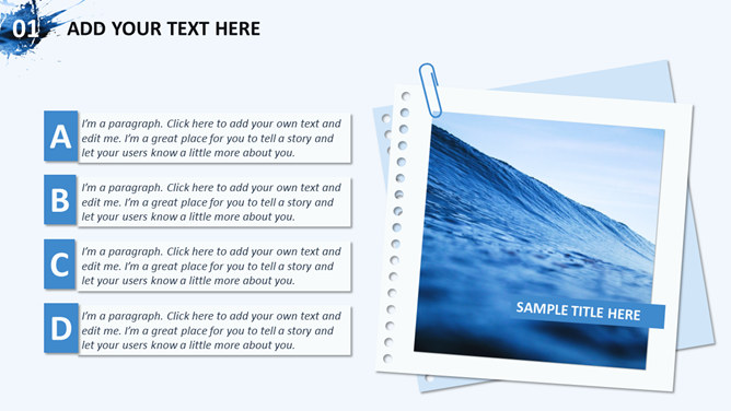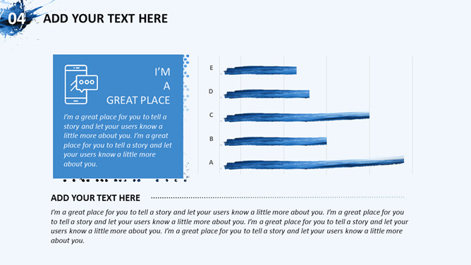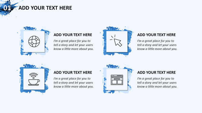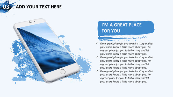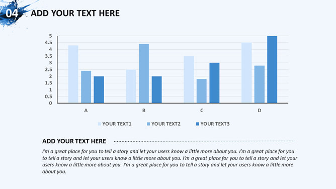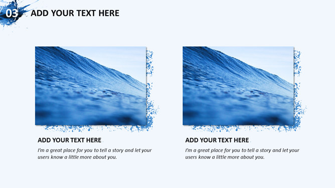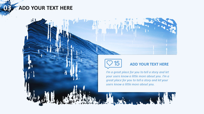 创意图片墨迹时尚商务PPT模板。一套蓝色商务风格幻灯片模板,创意图片墨迹作用规划,简练大气时尚。
