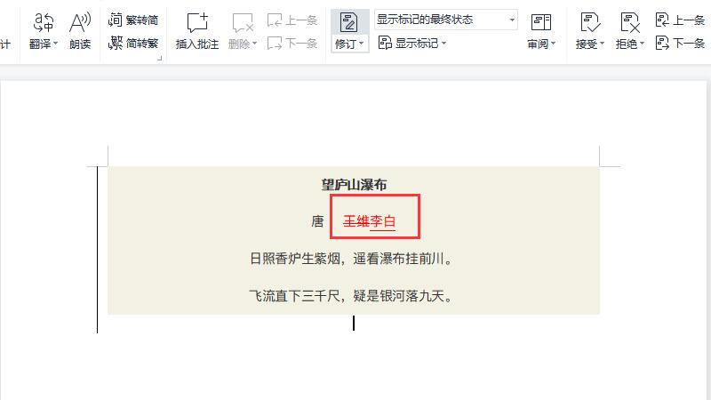 修改内容产生记录开启修订模式后对文档中的内容进行修改,所修改的内容会产生记录。