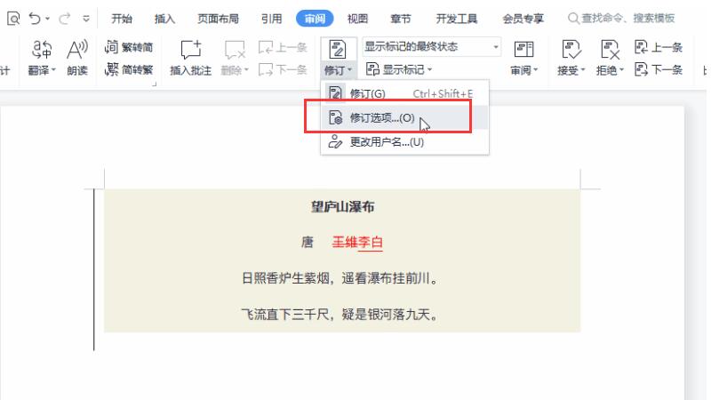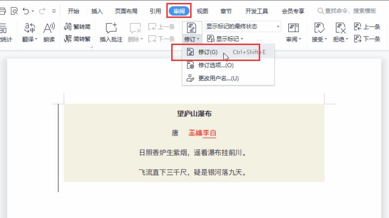 在Word文档中打开修订模式打开需要修订的word文档,依次点击顶部菜单栏中的“审核”-“修订”选项以打开修订模式。