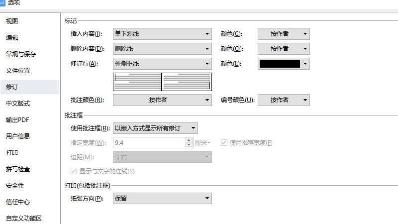 点击“修订选项”修改样式在“审核”中选择“修订选项”还可以对修订样式进行修改。