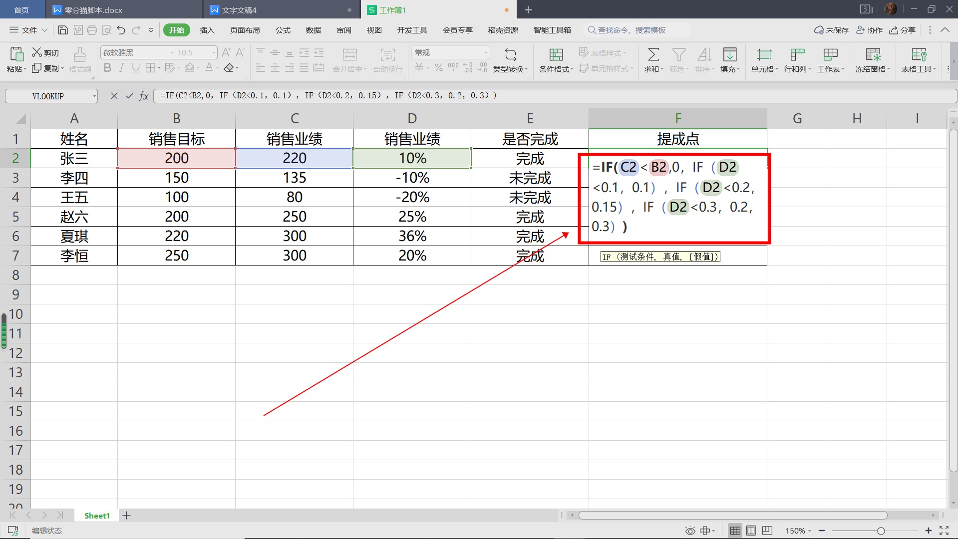 输入第2组嵌套如果达到10%,继续嵌套“IF(D2
