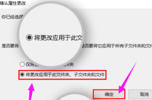 五、然后,在窗口中挑选将更改使用于此文件夹,点击翻开。