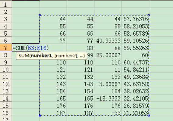 3、当求和方位处于一组数据右方时,输入”ALT=“,求和方位右边数据也主动被选入求和规模。