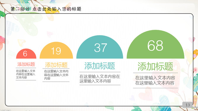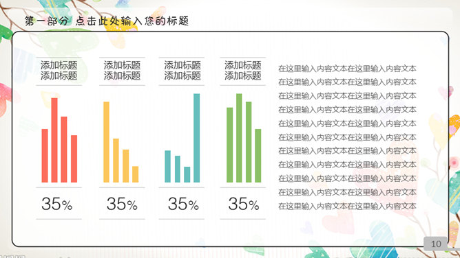 动态五颜六色心爱儿童卡通PPT模板。一套精巧心爱卡通风格幻灯片模板,多彩五颜六色配色,动态播映,页面类型丰富。