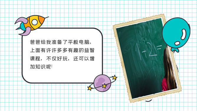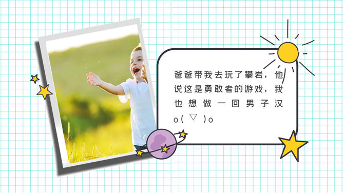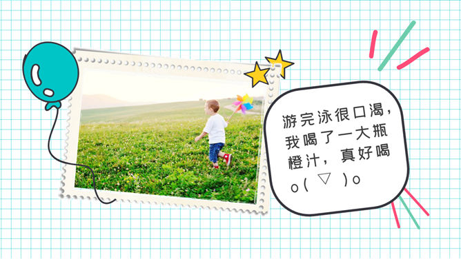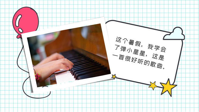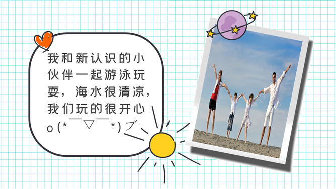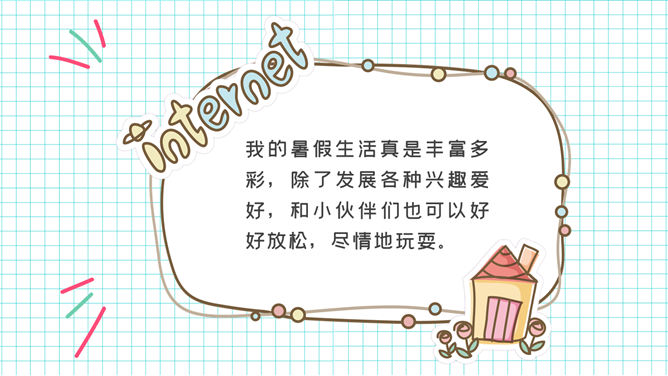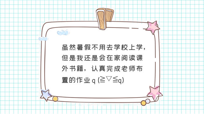 小学生暑假日子展现PPT模板。一套卡通风格小学生暑假日子报告展现幻灯片模板,包括我的学习和日子等内容。