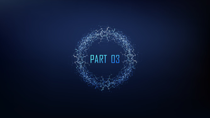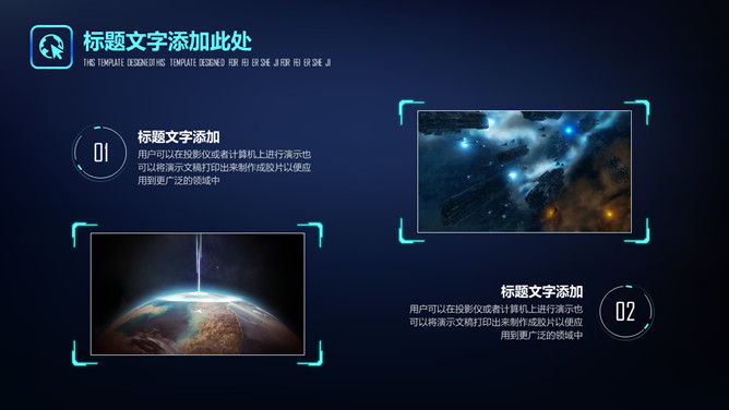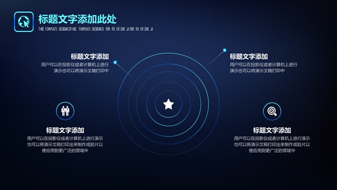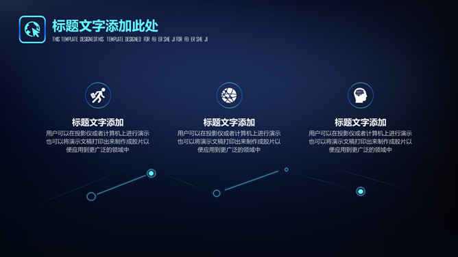 深蓝科技行业报告PPT模板。一套非常有科技感的幻灯片模板,深蓝色彩,点线粒子和荧光作用,合适科技行业。
