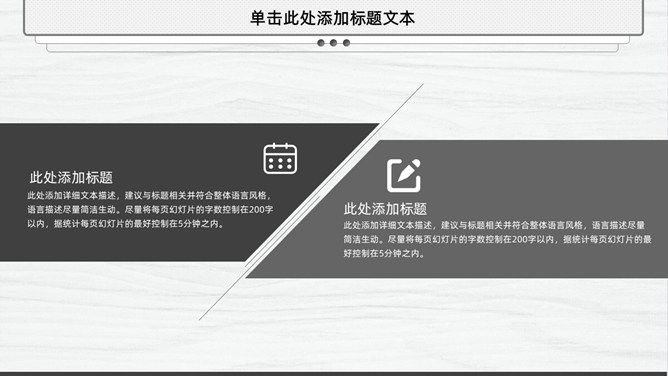精巧精约素雅通用PPT模板。一套简练通用幻灯片模板,素雅黑灰配色,很有规划感,合适工作汇报总结等用处。