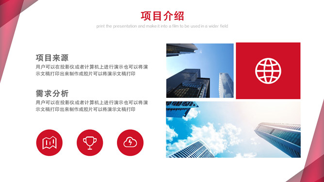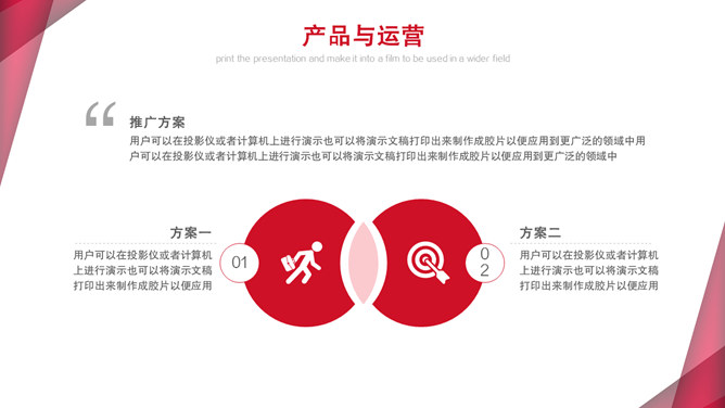 赤色大气商业计划书PPT模板。一套创业商业计划书幻灯片模板,大气赤色主色调,主张装置字体:方正黑体简体。