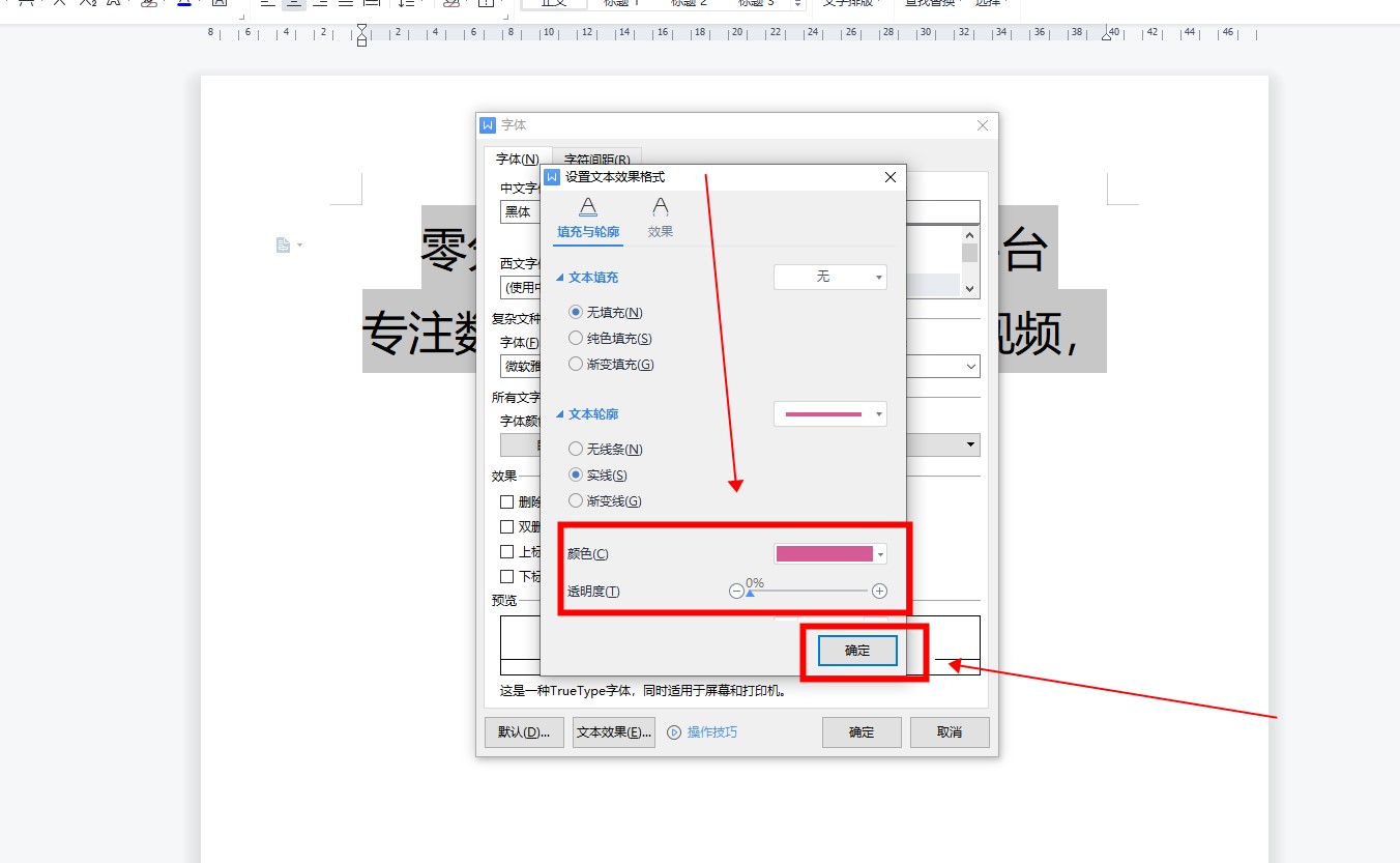 挑选无填充及实线接着将文本填充挑选为“无填充”,文本轮廓挑选“实线”。