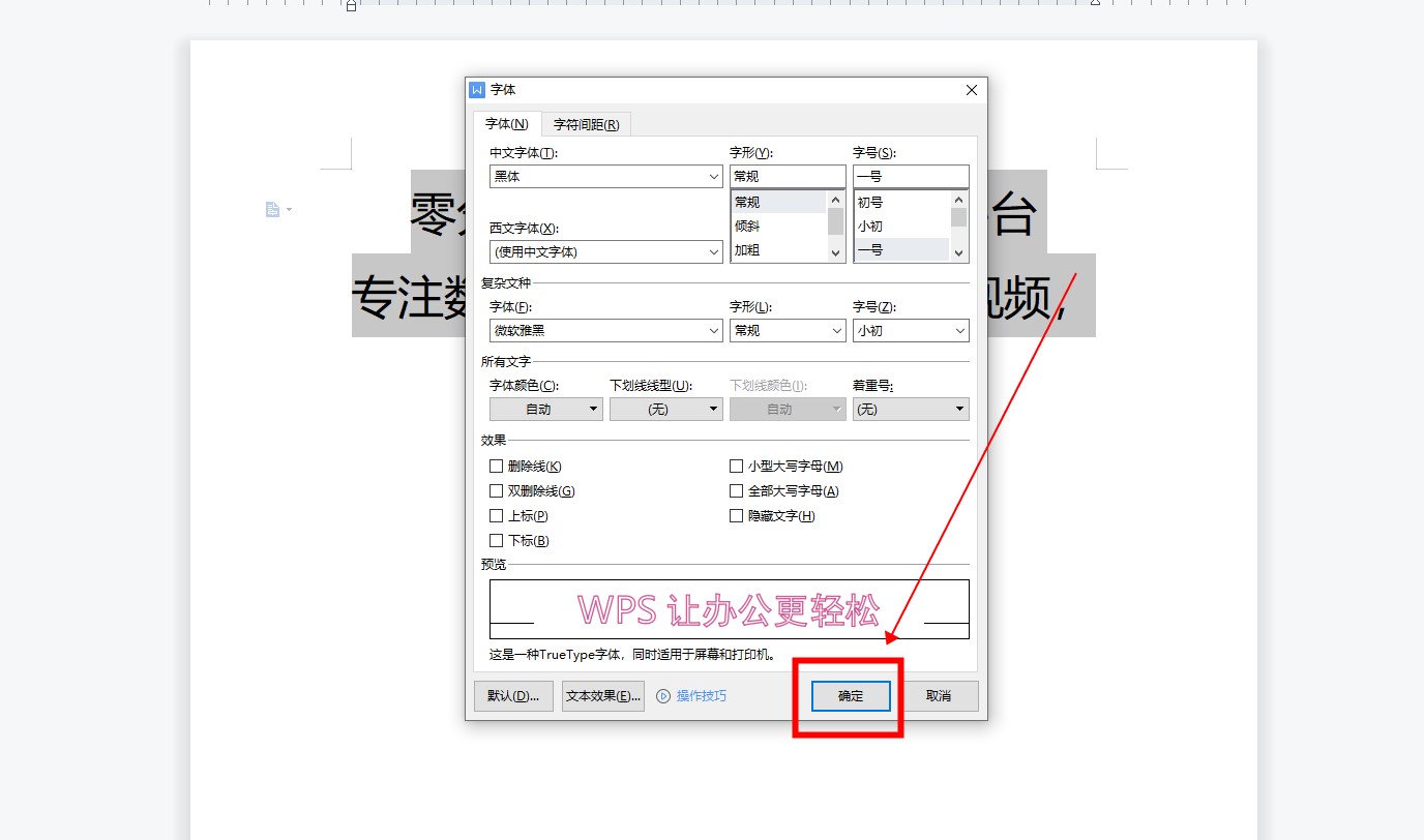 挑选黑体点击文本作用在字体窗口中,挑选字体为“黑体”,点击“文本作用”。