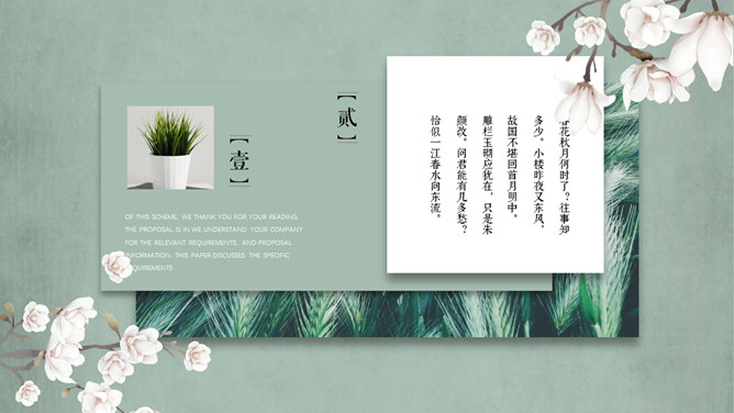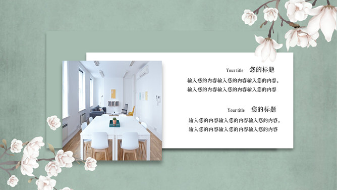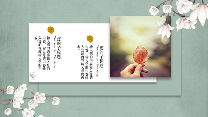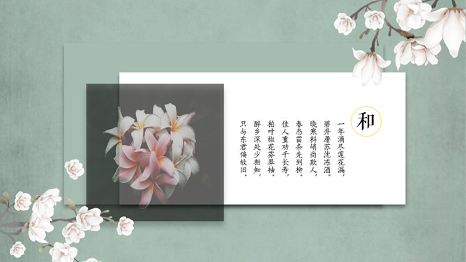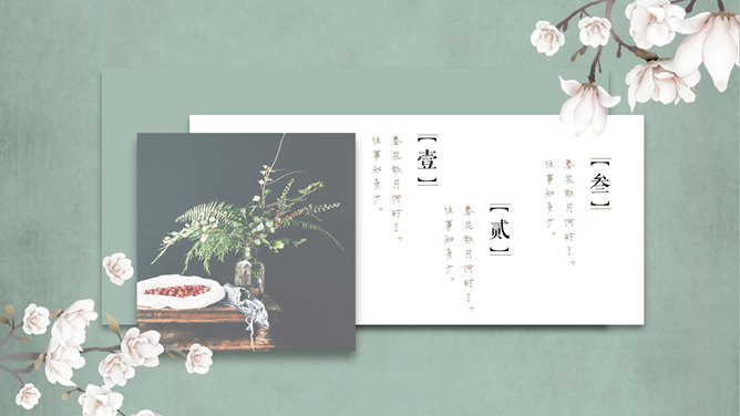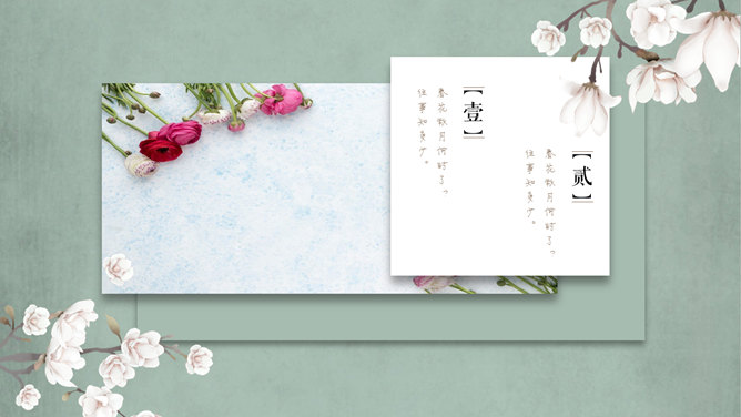 春天唯美素雅花朵PPT模板。一套春天主题幻灯片模板,唯美花朵装饰,卡片式规划效果,素雅配色。