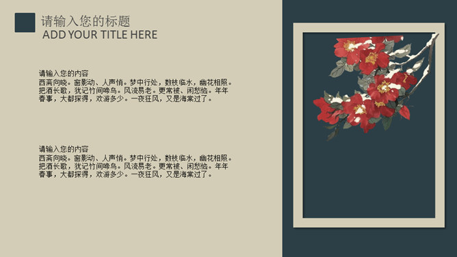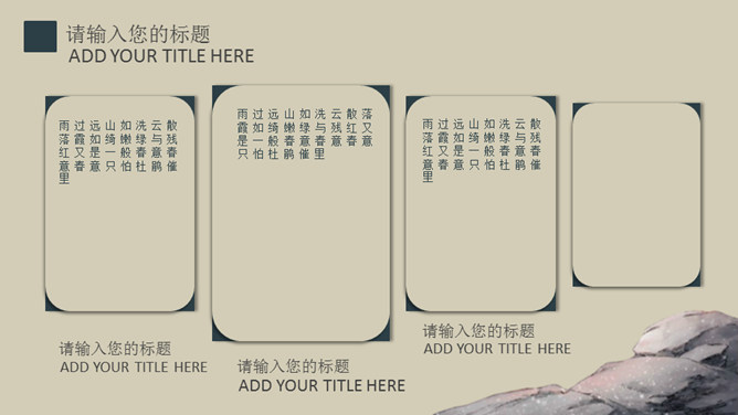 高雅古诗词中国风PPT模板。一套古典中国风幻灯片模板,大气高雅复古设计,适合古诗词的介绍品鉴等用途。