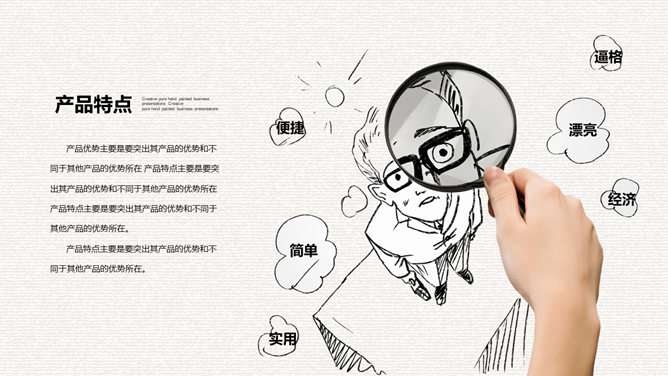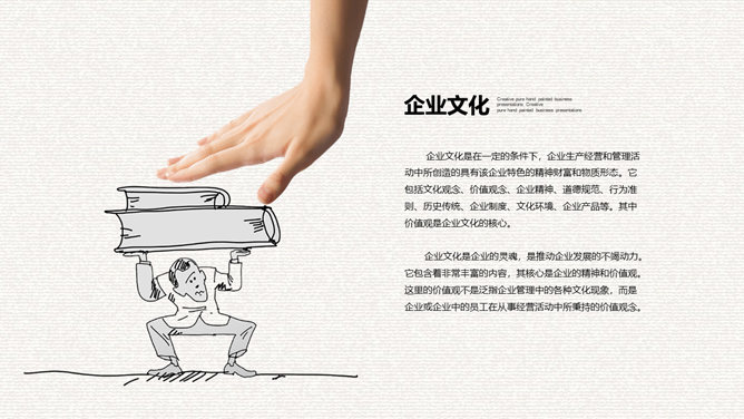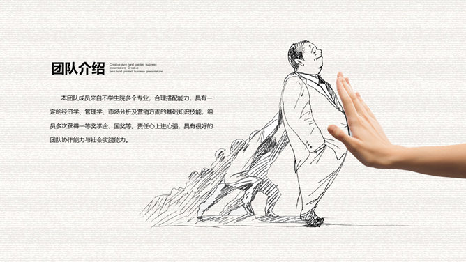 构思手绘手势公司介绍PPT模板。一套公司简介介绍幻灯片模板,构思手势设计,手绘风格,精约大气。