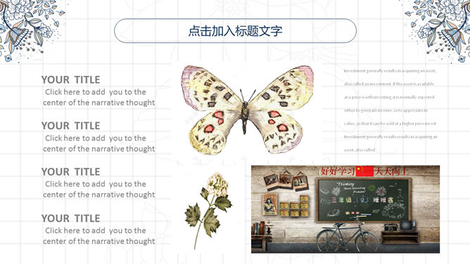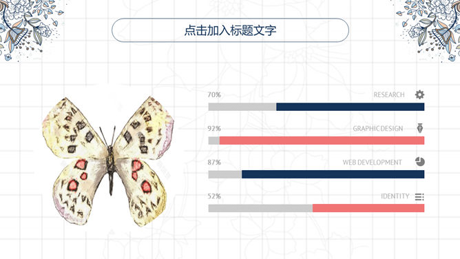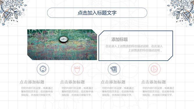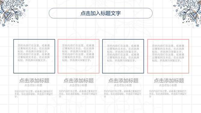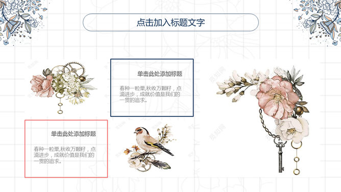 复古风花朵斑纹PPT模板。一套唯美美观的幻灯片模板,复古斑纹花朵装饰,动态播放作用,页面类型丰厚实用。