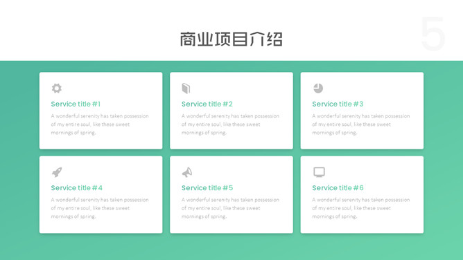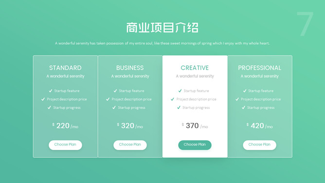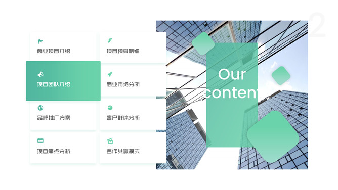 新鲜绿色商业计划书PPT模板。一套商业创业计划书幻灯片模板,新鲜绿色配色,精约大气规划,适合商务相关主题。