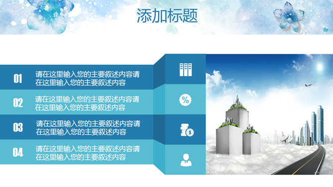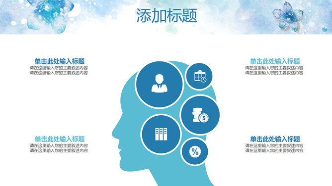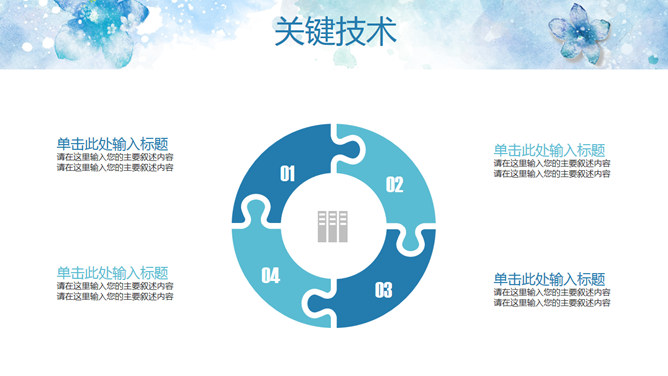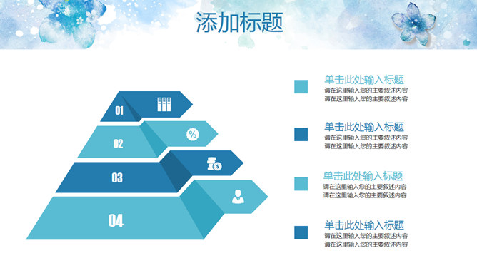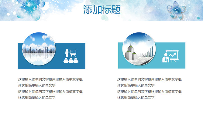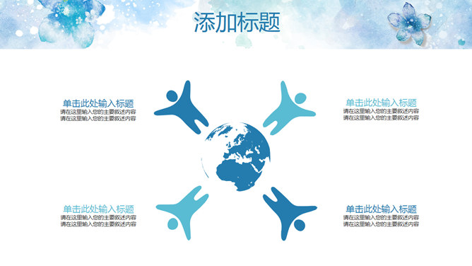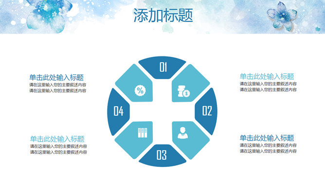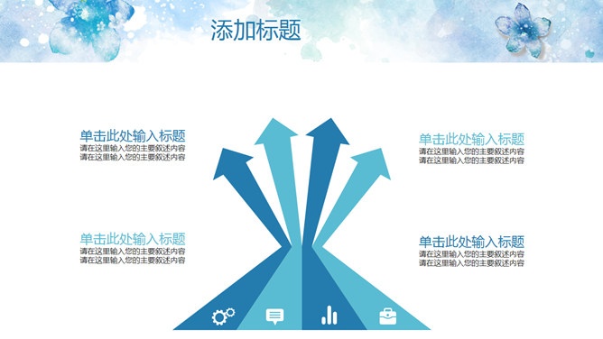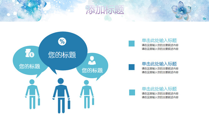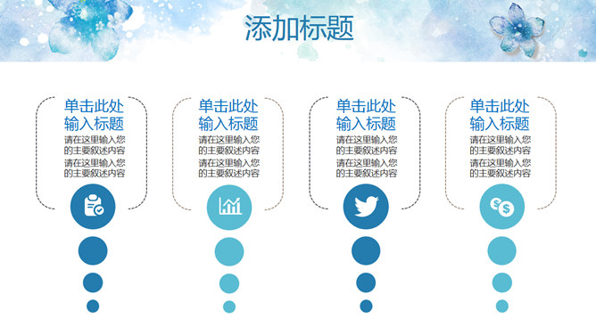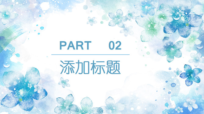 浓艳新鲜水彩花卉PPT模板。一套新鲜浓艳风幻灯片模板,蓝色水彩花朵主题设计,好看的动态播映效果。