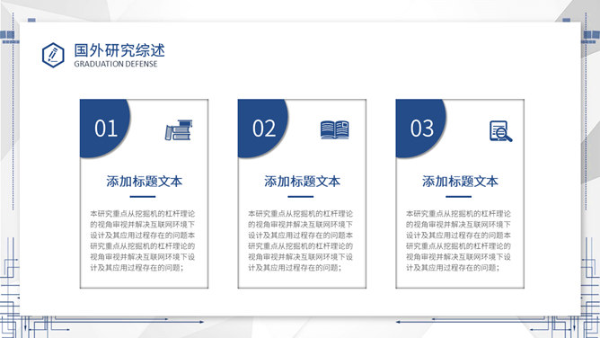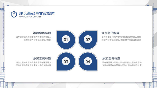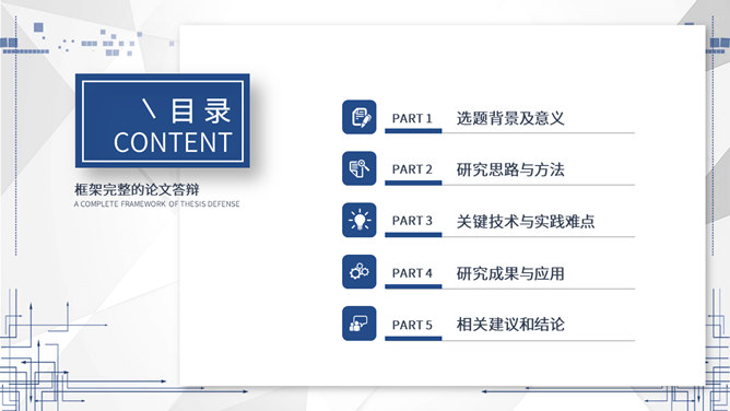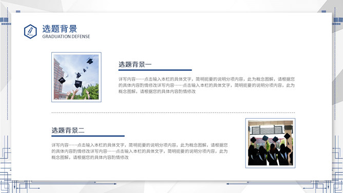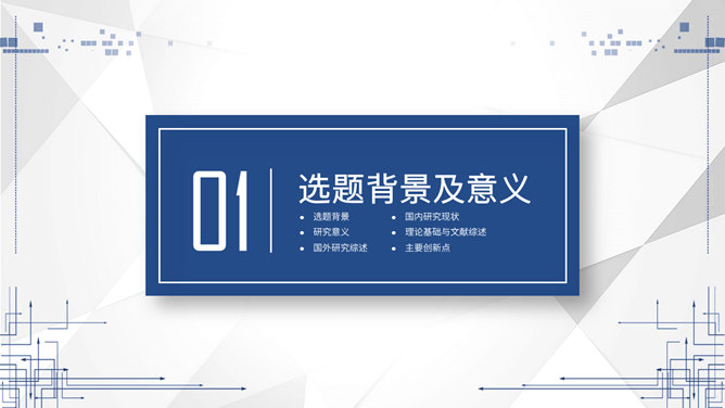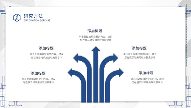 毕业答辩开题陈述PPT模板。一套学术论文相关幻灯片模板,适合毕业设计论文答辩或课题开题陈述等用途。
