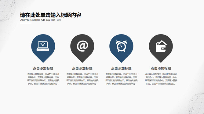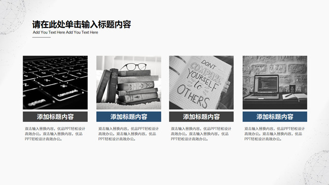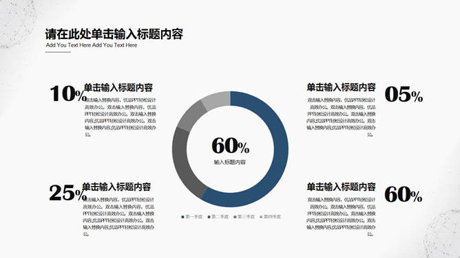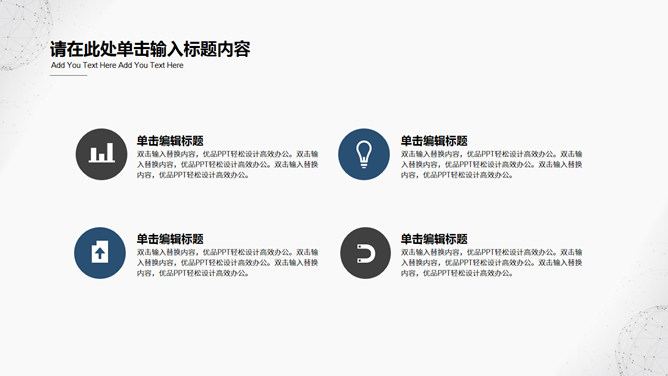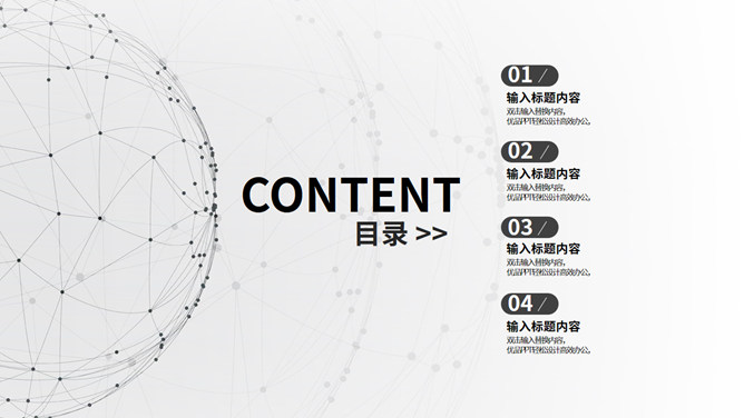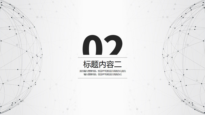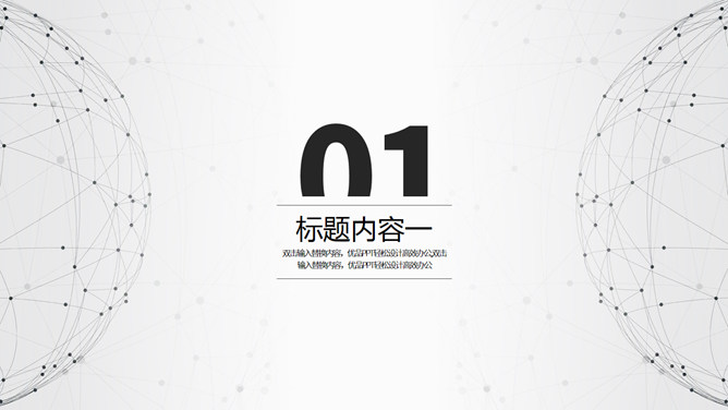 精约点线粒子通用PPT模板。一套精约通用幻灯片模板,大气灰黑配色,科技风点线粒子布景,通用性强。