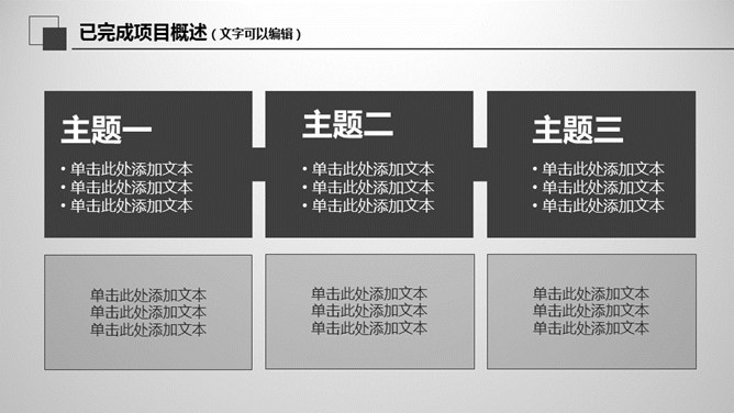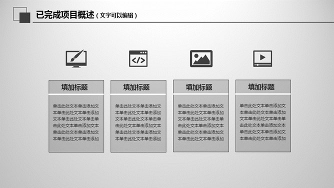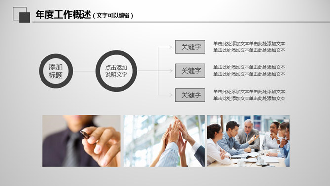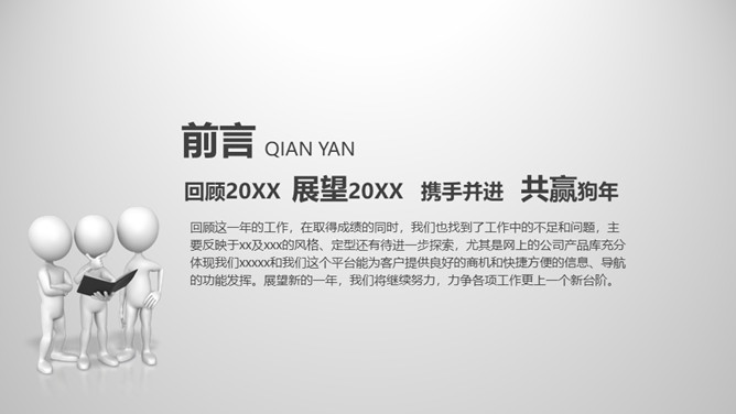 大气灰色年终报告PPT模板。一套年终工作总结汇报幻灯片模板,大气稳重灰色色彩,页面丰富实用,动态播映。
