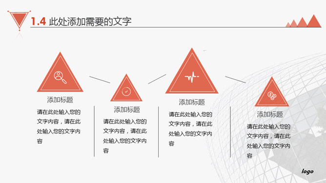 大气产品公司介绍PPT模板。一套公司产品介绍幻灯片模板,大气红黑配色,动态播映,三角形主题元素规划。