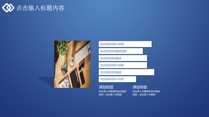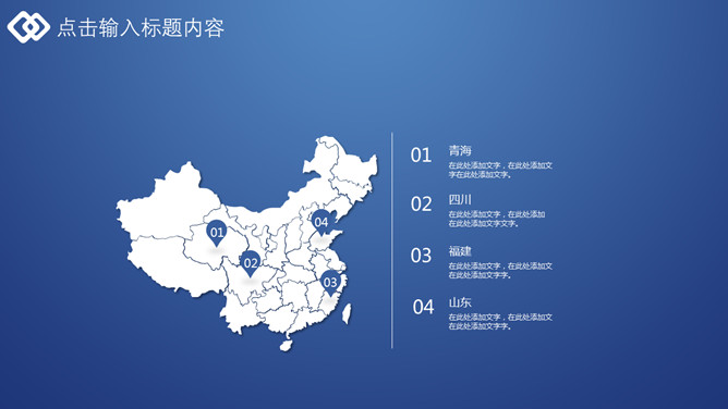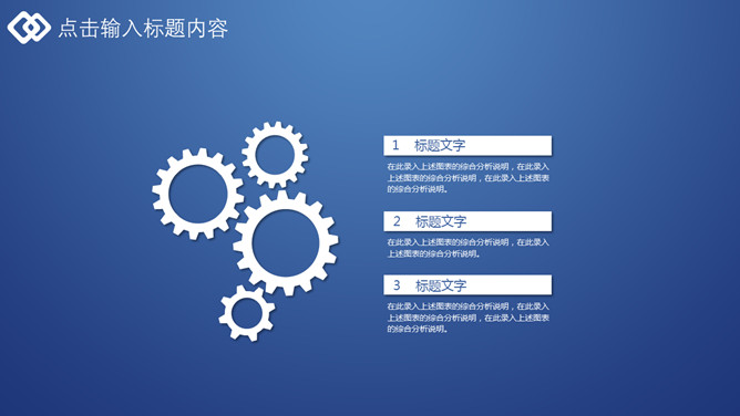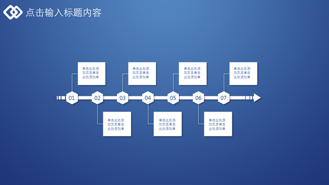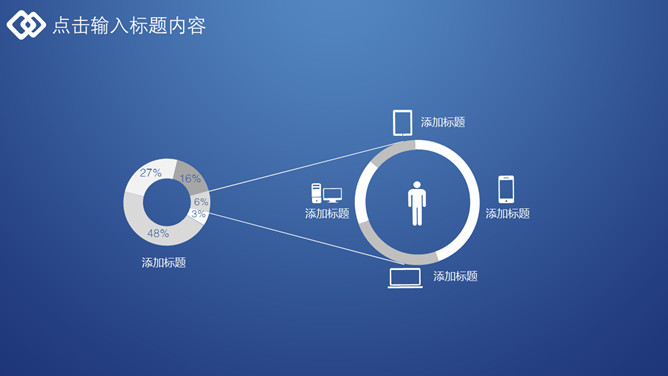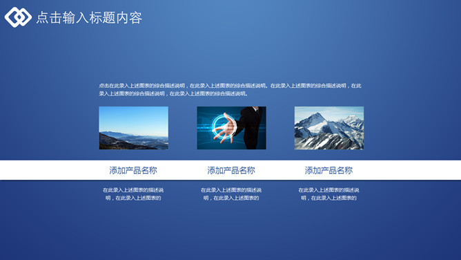 大气极简深蓝通用PPT模板。一套精约通用幻灯片模板,质感深蓝渐变背景,白色形状元素,框架结构完好。