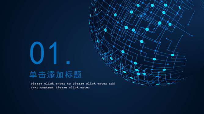 互联网大数据电子商务PPT模板。一套蓝色荧光效果科技风幻灯片模板,合适大数据、电子商务等互联网行业使用。