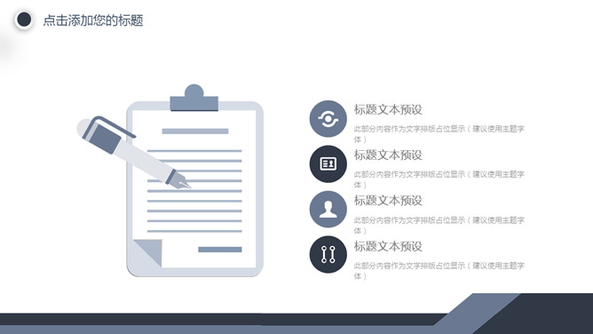 精约规划商务通用PPT模板。一套商务通用幻灯片模板,大气慎重蓝灰色色调,精约规划,动态播映作用。