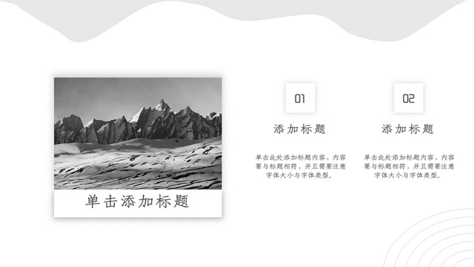精约素雅黑白商务PPT模板。一套极简创意设计幻灯片模板,素雅黑白灰配色,动态播映效果,合适商务相关主题。
