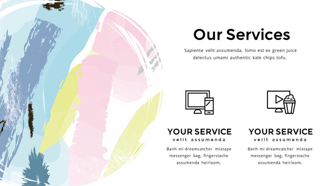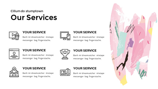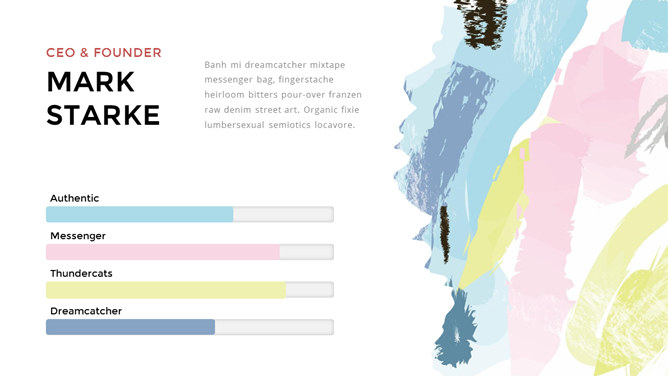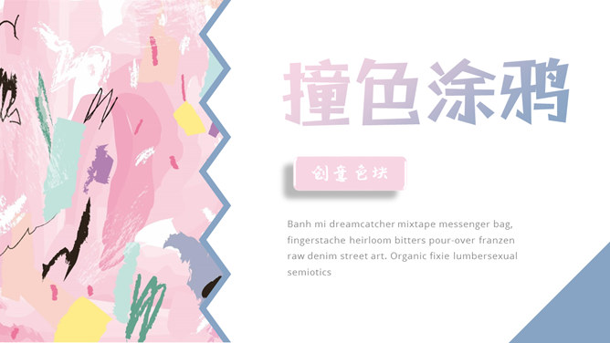 炫彩艺术撞色涂鸦风PPT模板。一套创意艺术规划幻灯片模板,炫彩撞色配色,水彩涂鸦规划风格,动态播映效果。