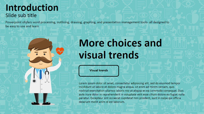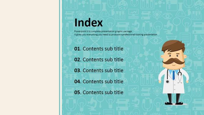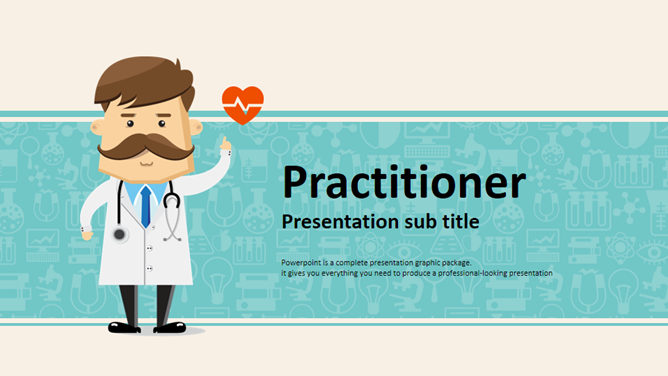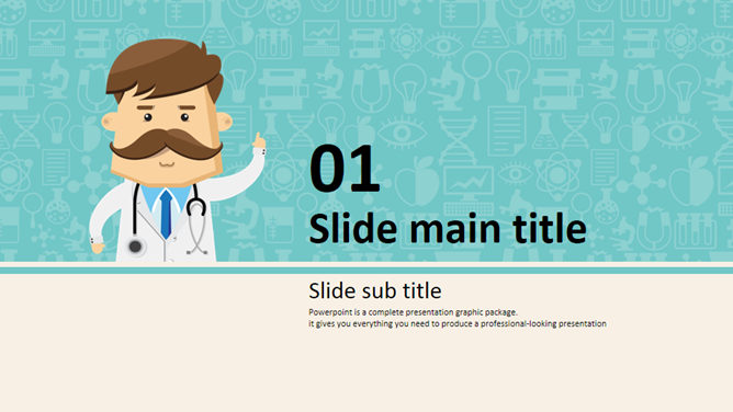 卡通医师医学医疗主题PPT模板。一套以卡通医师小人为首要元素设计的医学医疗类幻灯片模板,蓝绿灰三种配色可选。