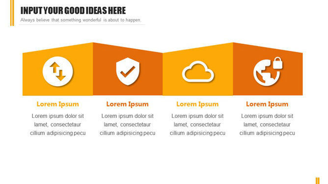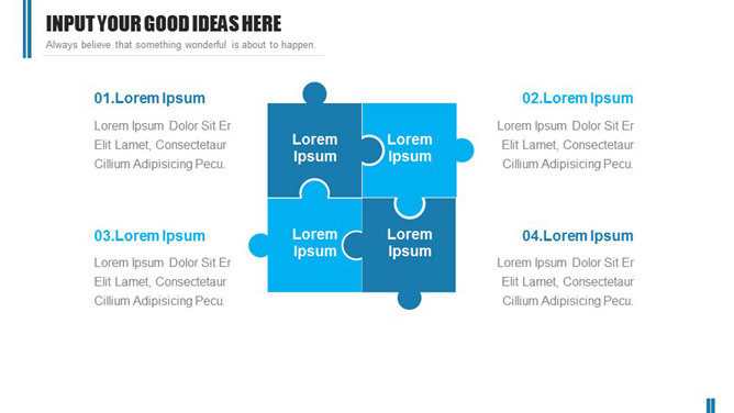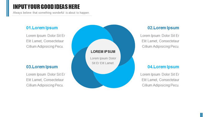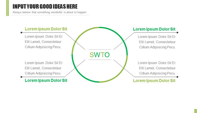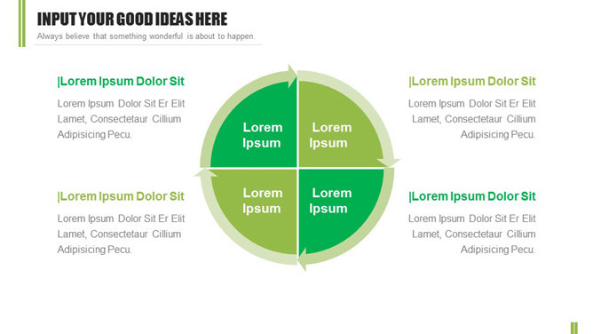 一份精约新鲜的幻灯片模板,4个章节4种配色,无缝动态切换作用,图表页面丰厚,关键词:简洁PPT模板。
