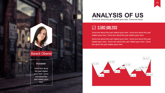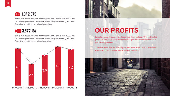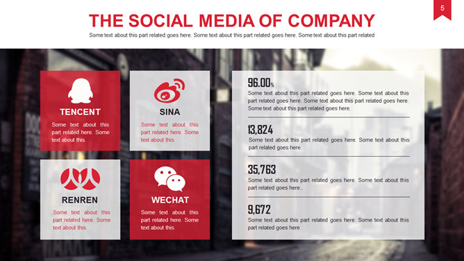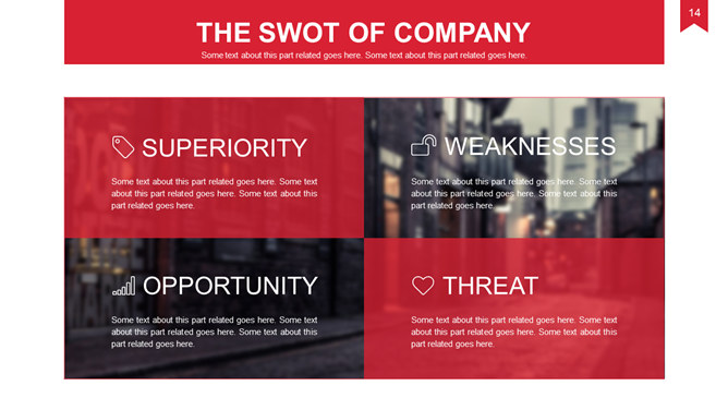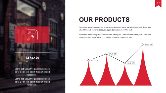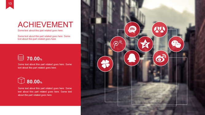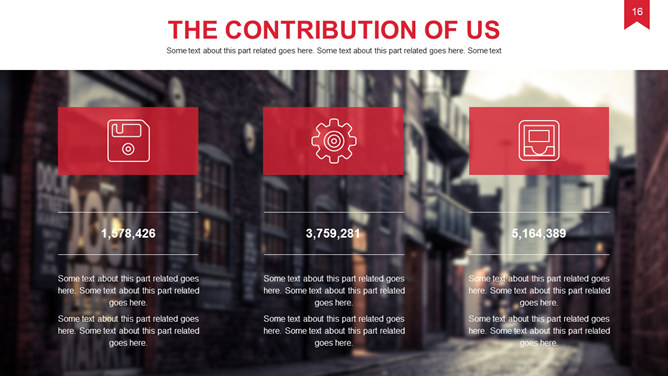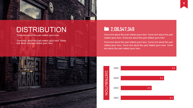 大图布景欧美杂志风PPT模板。一套欧美范幻灯片模板,全图型街景图片布景,赤色主色调,时尚杂志风设计风格。