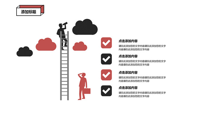 精约构思孟菲斯风格PPT模板。一套精约通用幻灯片模板,经典红黑配色,构思孟菲斯风格规划,动态播放。