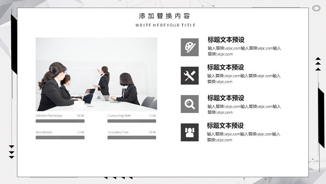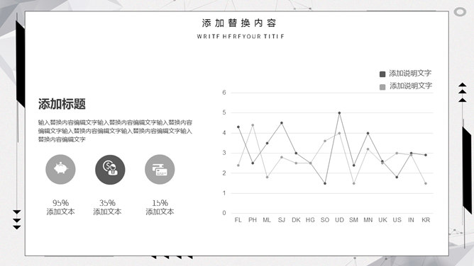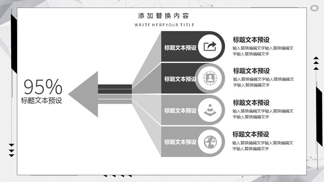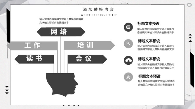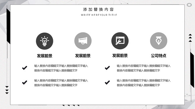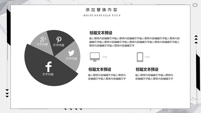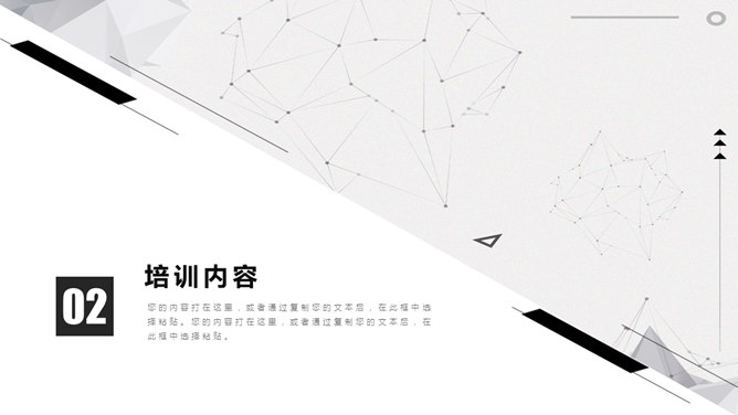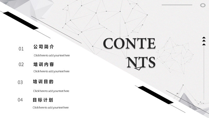 大气创意黑灰通用PPT模板。一套多功能通用幻灯片模板,大气黑灰配色,创意点线元素装饰,通用性强。