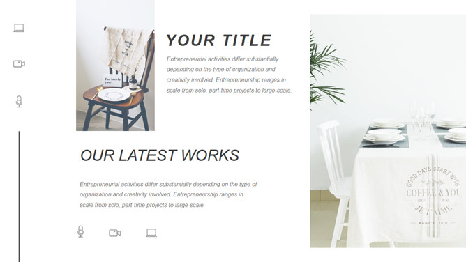 精约精巧图文排版PPT模板。一套精巧图文排版幻灯片模板,多种布局款式,精约精巧,动态播放作用。