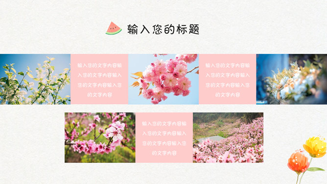 心爱糖块色水彩叶子花朵PPT模板。一套唯美小新鲜幻灯片模板,心爱水彩花朵叶子装饰,糖块色系配色,适合女生。