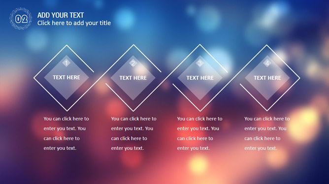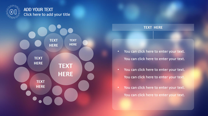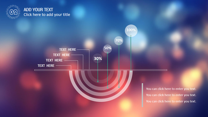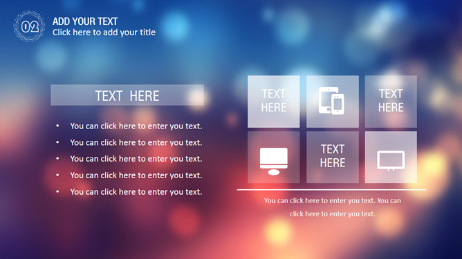 炫彩梦境光斑IOS风PPT模板。一套美观的IOS风幻灯片模板,梦境炫彩光斑布景,白色半透明形状元素,动态效果。