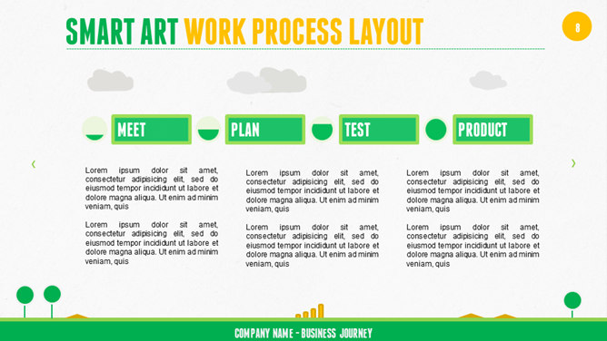 可爱清爽绿色卡通PPT模板。一套可爱卡通风格幻灯片模板,清爽绿色主色调,不规则矩形形状元素,动态播放作用。