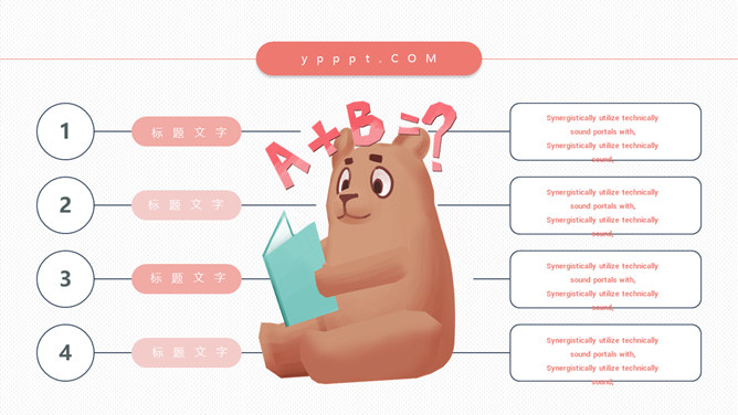 卡通小熊儿童读书分享PPT模板。一套清新卡通规划幻灯片模板,可爱小熊主题,合适小学儿童读书分享主题。