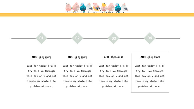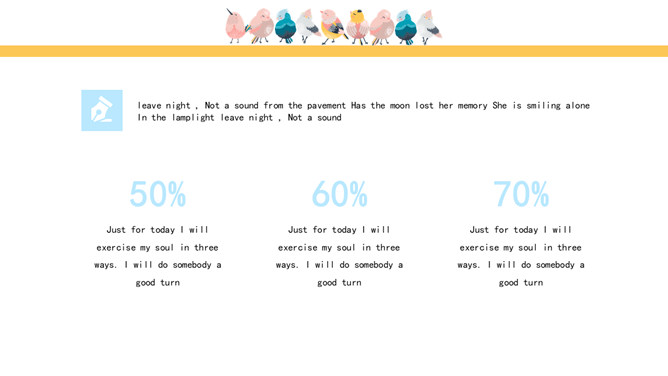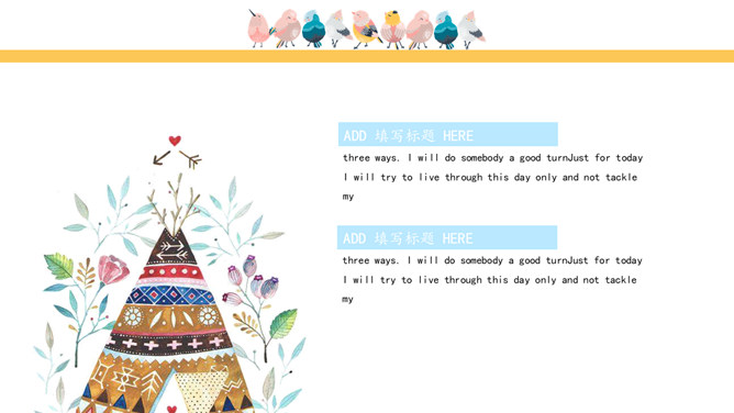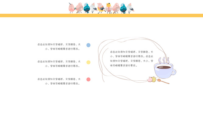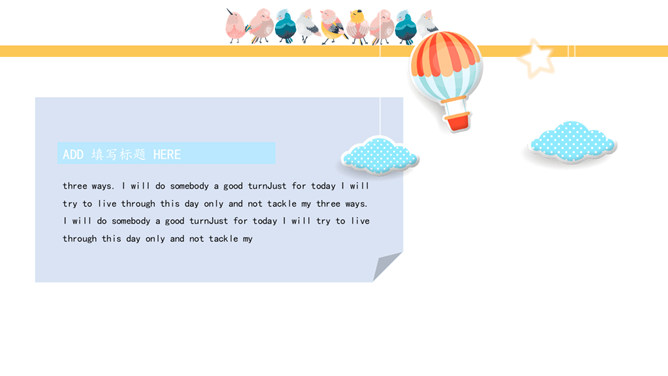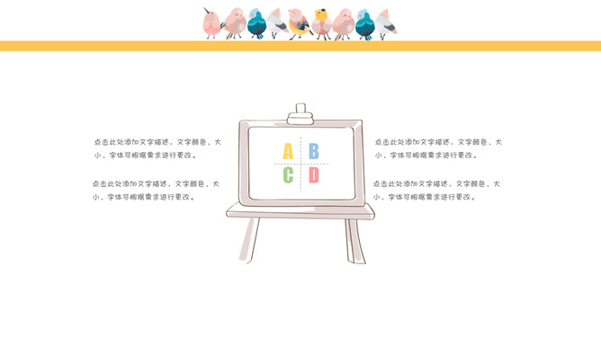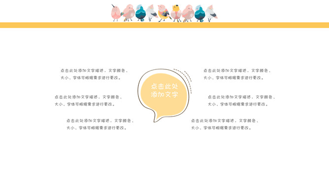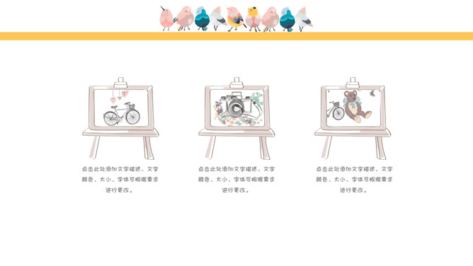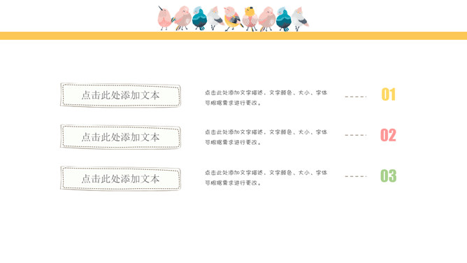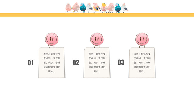 可爱卡通小鸟PPT模板。一套卡通风格规划幻灯片模板,可爱小鸟主题,精约规划,动态播放效果。
