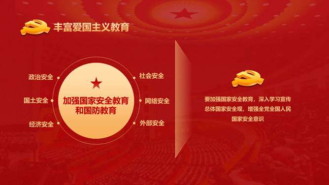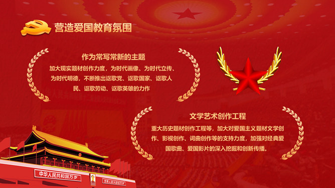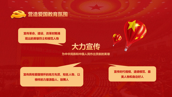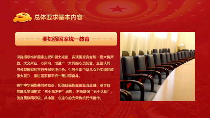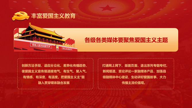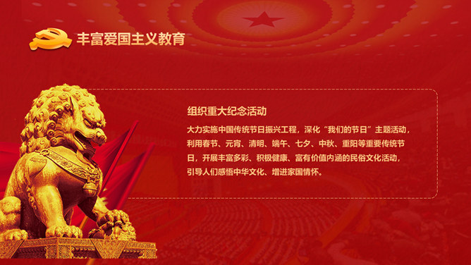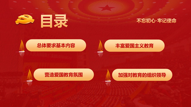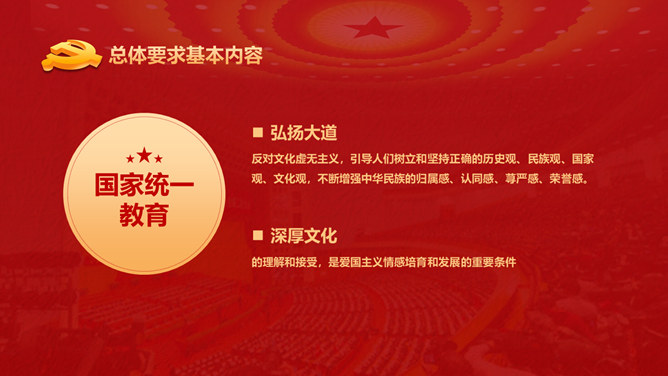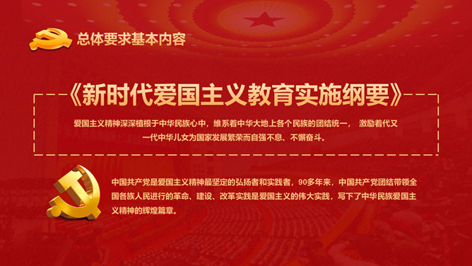爱国主义教育课件PPT模板。包含整体要求基本内容、丰厚爱国主义教育、营造气氛、加强对教育的组织领导等内容。