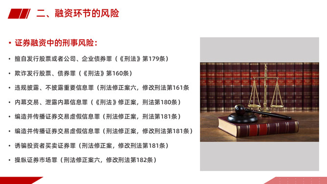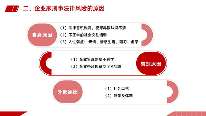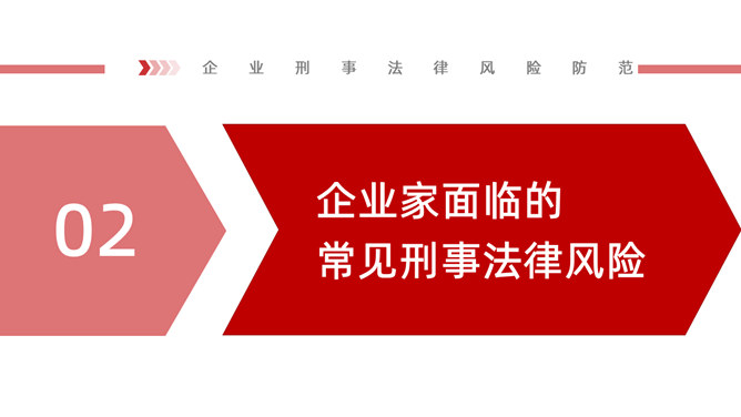 企业刑事法律危险防备PPT课件模板。包含企业高管与刑事犯罪、企业家面临的常见刑事法律危险、国有企业的刑事危险、企业家刑事法律危险控制与防备、企业家身处危境的自我维护等内容。