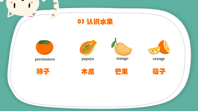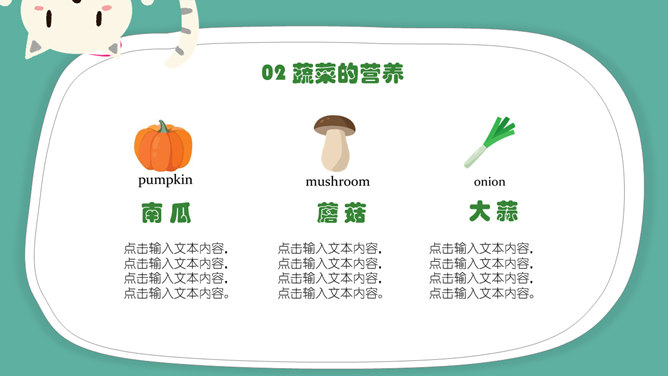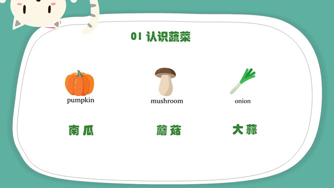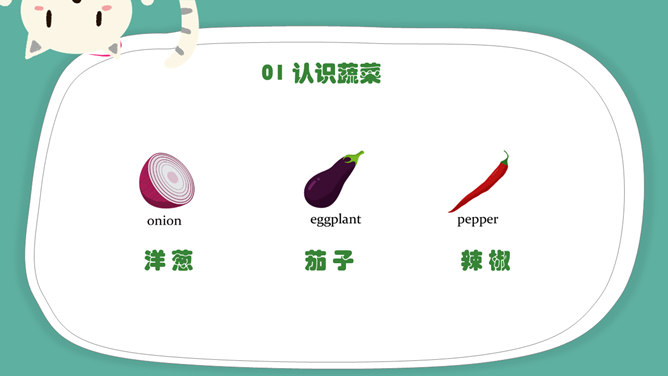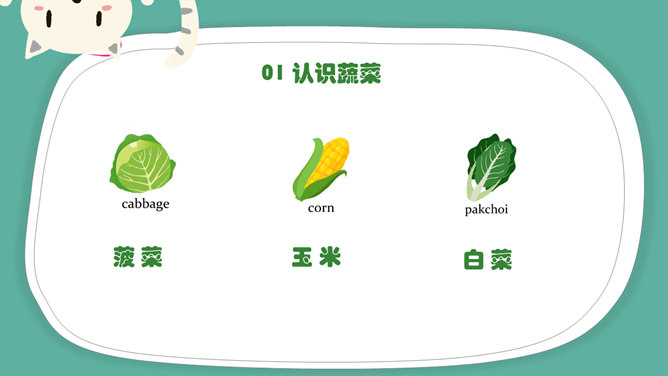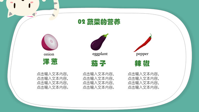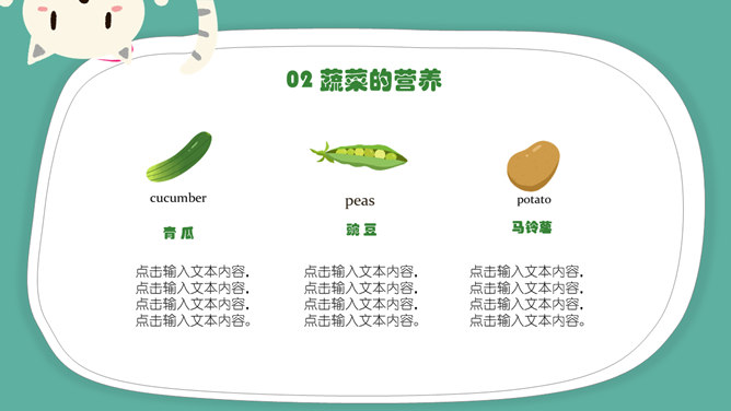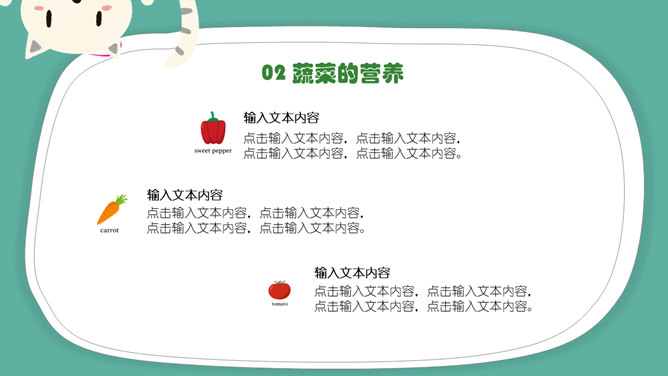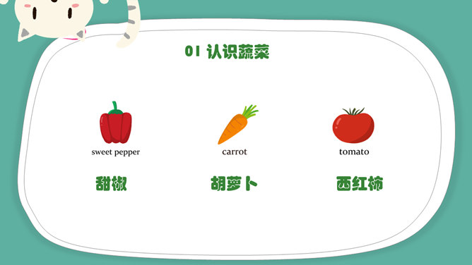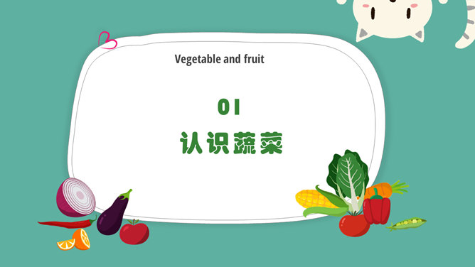 儿童幼儿知道蔬菜水果PPT模板。一套合适幼儿园儿童教育教学幻灯片模板,介绍知道蔬菜水果,可爱卡通设计。