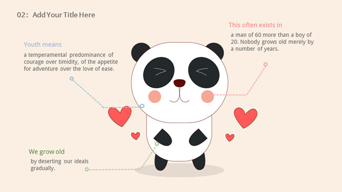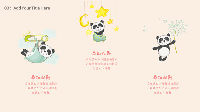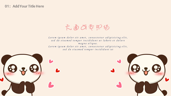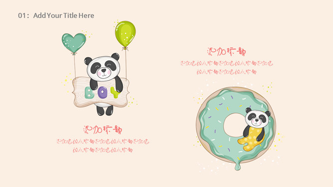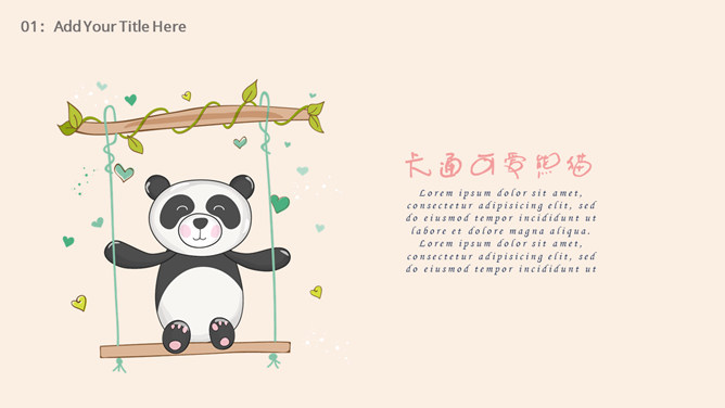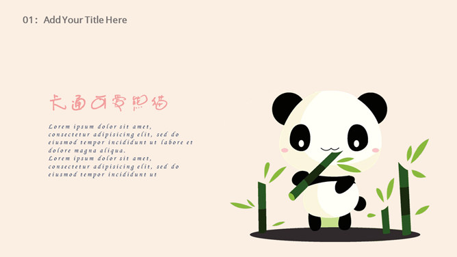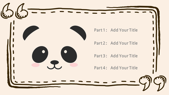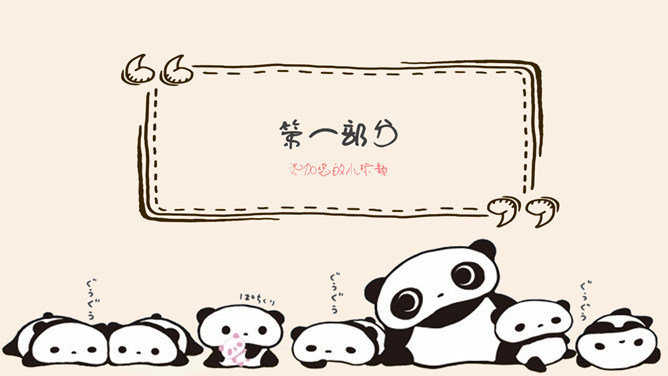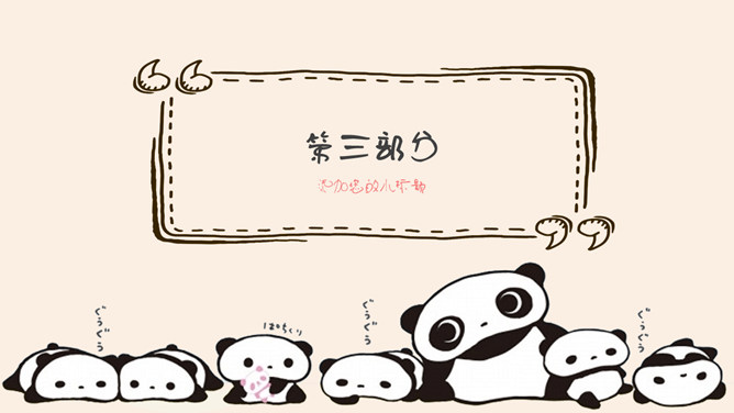 心爱卡通熊猫幼儿PPT模板。一套卡通风格幻灯片模板,心爱熊猫主题,合适幼儿园、小学教育课件使用。