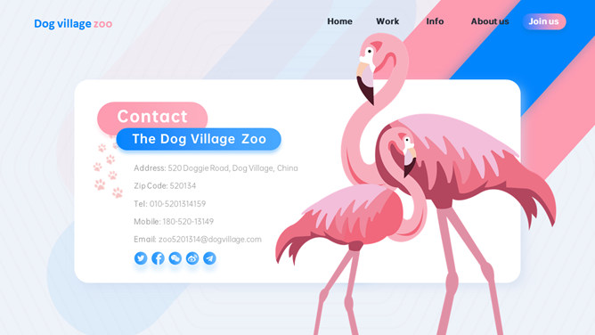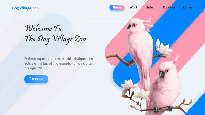 创意时髦粉蓝鹦鹉PPT模板。一套创意设计幻灯片模板,清新时髦粉蓝配色,鹦鹉、火烈鸟等动物元素。