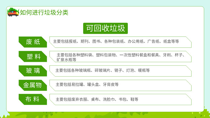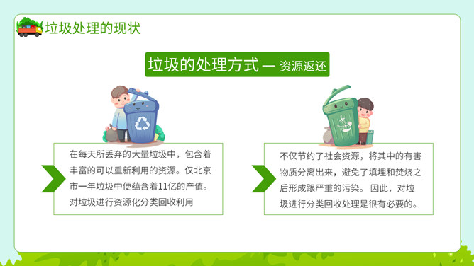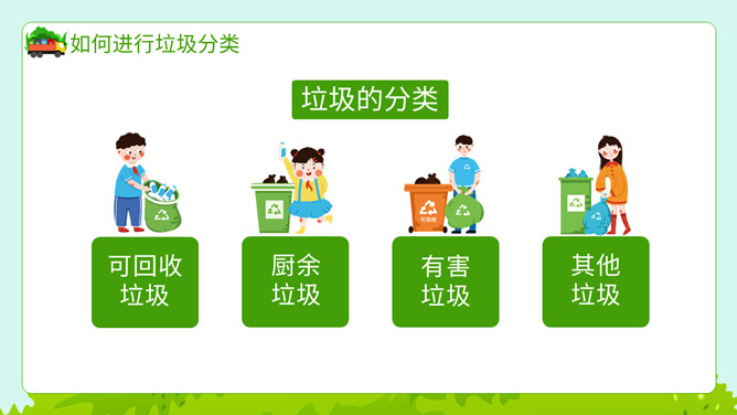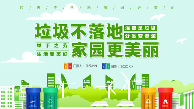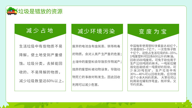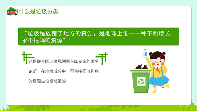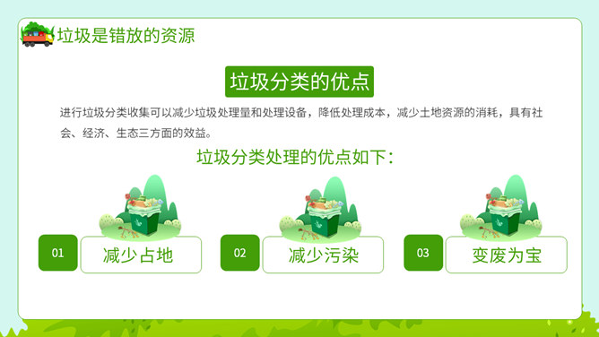 废物分类教育宣扬PPT模板。什么是废物分类、废物处理的现状、废物是错放的资源、如何进行废物分类。